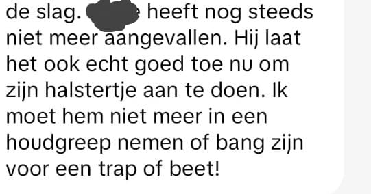 “Cara was altijd onvangbaar, na 3 weken bleef ze staan, liep ze met mij mee. Dit 1 op 1 traject is zo waardevol, Het geef mij inzichten over mezelf en hoe ik dit overbreng op Cara. “
